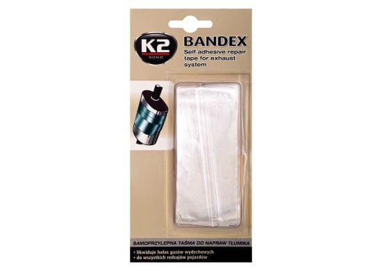 K2 BANDEX to samoprzylepna taśma do napraw tłumika. Likwiduje hałas układów wydechowych we wszystkich rodzajach pojazdów. Bardzo ekonomiczna i odporna na wysokie temperatury.