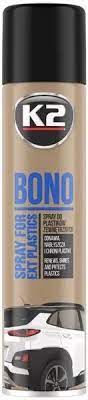 K2 BONO to prosty w użyciu środek do odnowienia plastików zewnętrznych. Wysoce skuteczny w wydobywaniu oryginalnego koloru, odnawia i zabezpiecza wszelkie powierzchnie plastikowe, winylowe oraz gumowe. Przywraca głębie plastikowym listwom, zderzakom czy osłoną nadkoli i sprawia, że wyglądają jak nowe.