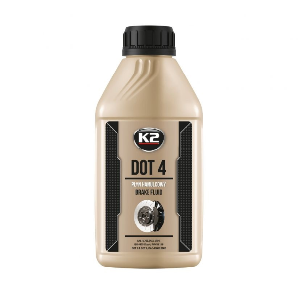 Płyn hamulcowy DOT 4 posiada doskonałe parametry reologiczne pozwalające na stosowanie w bardzo niskich temperaturach. Jest neutralny dla uszczelnień i stopów metali stosowanych w układzie hamulcowym oraz chroni go przed korozją. Płyn hamulcowy K2 DOT 4 posiada temperaturę wrzenia przekraczającą 230 st. C, dzięki czemu dłużej zachowuje on swoje właściwości. Produkt jest w pełni mieszalny z innymi płynami klasy DOT.