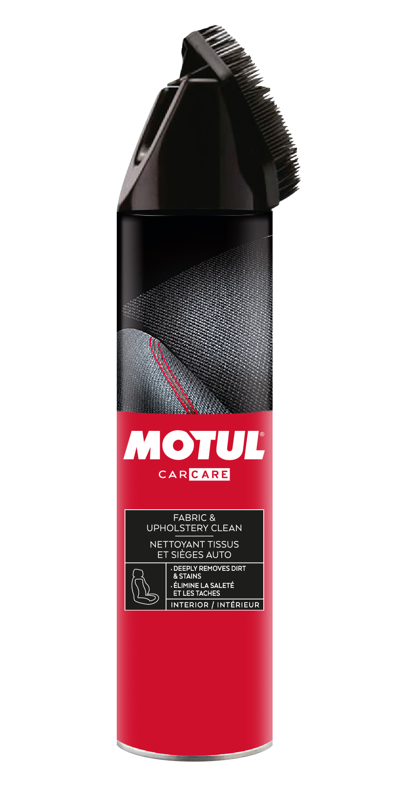 FABRIC & UPHOLSTERY CLEANCzyści i usuwa plamy z tapicerki. Specjalnie opracowany w celu ochrony tekstyliów i wykładzin. MOTUL® Car Care Fabric & Upholstery Clean pozostawia przyjemny zapach. SPOSÓB UŻYCIA: Usuń kurz / odłamki z czyszczonej powierzchni odkurzaczem lub szczotką. Wstrząśnij puszką. Rozpyl z odległości 20 cm od czyszczonej powierzchni, trzymając aerozol odwrócony do góry nogami. Pozostaw do całkowitego wyschnięcia. Energicznie szoruj za pomocą dołączonej szczotki. Pozostałości usuń odkurzaczem lub szczotką. Wykonaj wstępny test na niewidocznym obszarze tapicerki. Nakładaj produkt na całą powierzchnię (nie tylko na zabrudzony obszar), aby uzyskać jednorodny efekt.