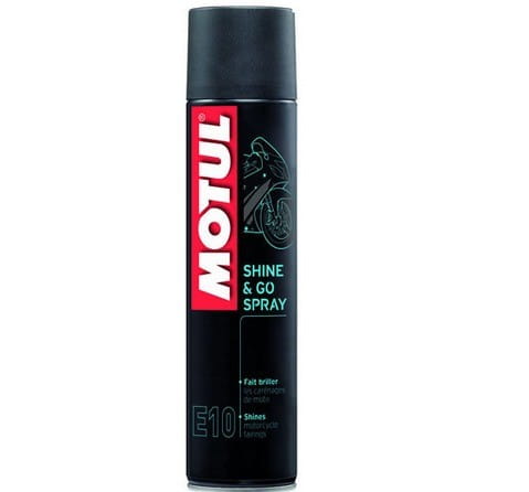 Preparat do nabyszczania i zabezpieczania elementów motocykla Motul E10 Shine & Go Spray dzięki specjalnej formule tworzy powłokę ochronną, która zapobiega przywieraniu zabrudzeń.