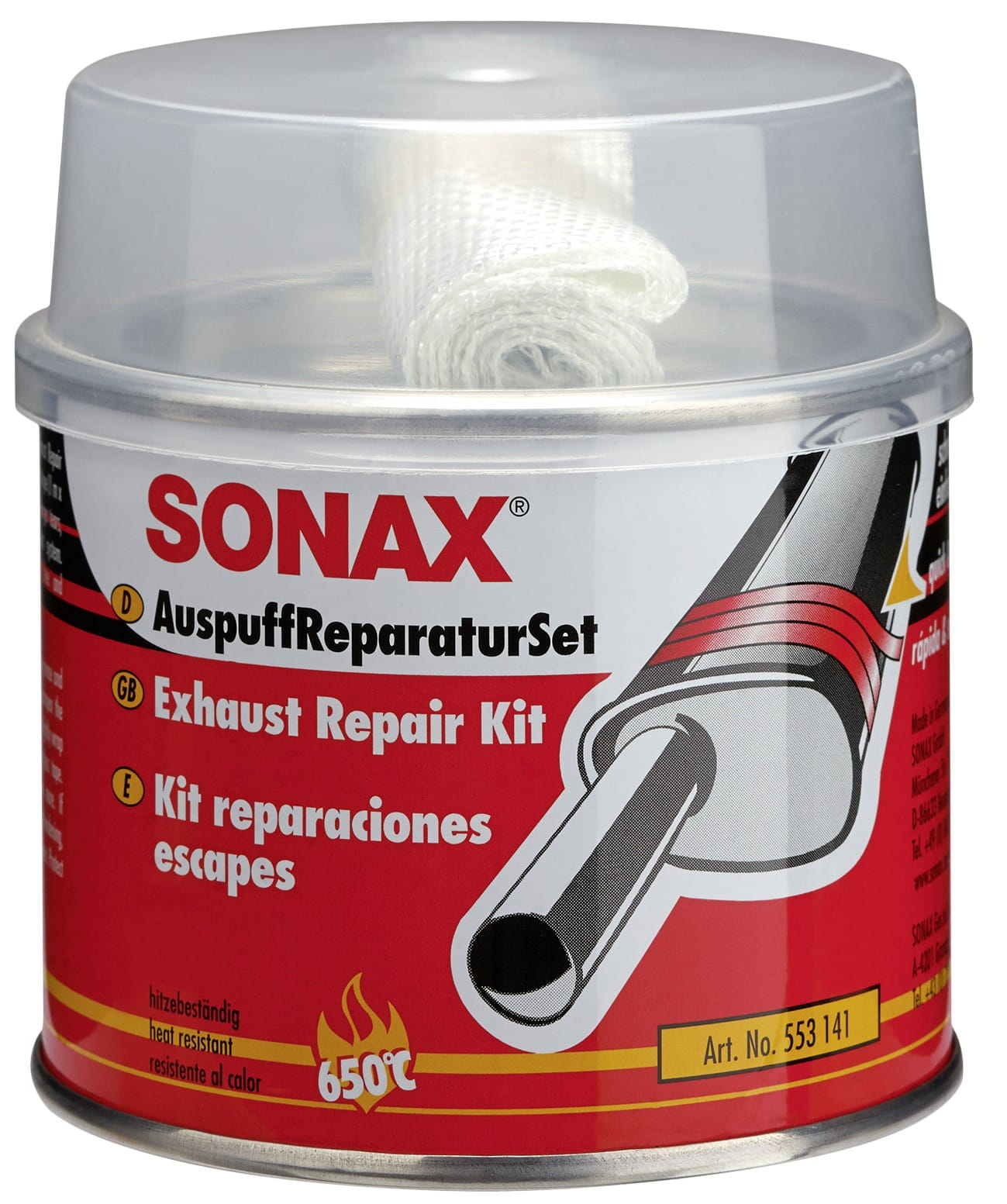 Zestaw składający się z Pasty naprawczej do tłumików oraz specjalnej taśmy z włókna szklanego o dużej odporności na działanie wysokich temperatur. Błyskawicznie i trwale zasklepia większe pęknięcia, dziury i nieszczelności w układzie wydechowym zapewniając absolutną gazoszczelność. Nie zawiera azbestu i jest odporny na bardzo wysokie temperatury.